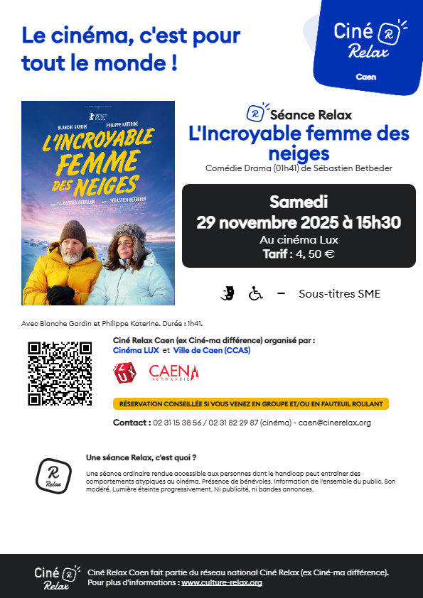 La Mission ville handicap du CCAS de la ville de Caen et le cinéma LUX proposent une séance Ciné Relax, le cinéma sans stress ouvert à toutes et tous avec ou sans handicap :